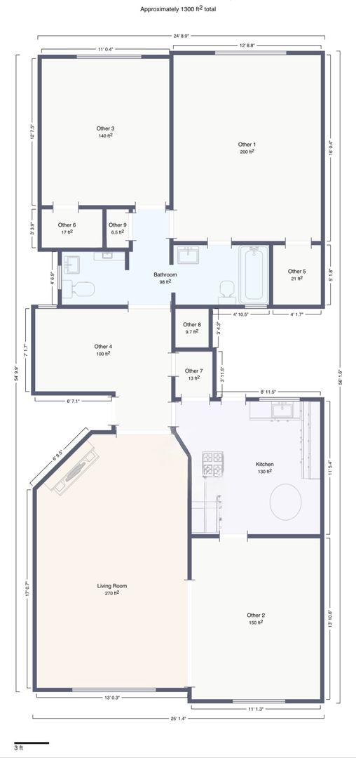 -Approximately 1,300 sq. ft. of living space